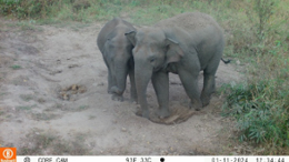 Die neu geschaffenen Mineral- und Salzleckstellen werden rege besucht. Am häufigsten sind dort Sambar-Hirsche anzutreffen (Reihe 1) gefolgt von Gaur, die größten lebenden Vertreter der Rinder (Reihe 2), Elefanten (Reihe 3, links), Muntjak (Reihe 4, links) und Wildschweinen (Reihe 4, rechts) (© alle Bilder DNP & WWF Thailand)